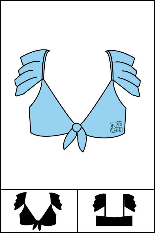 This feminine piece is fun to make, with its ruffle "sleeves" and a fully-adjustable bow tie knot. You can also make it without the sleeves. This style is more on the supportive side due to the adjustable tie in the front, and it provides lots of cleavage. You can also make the straps thicker to get more support.
