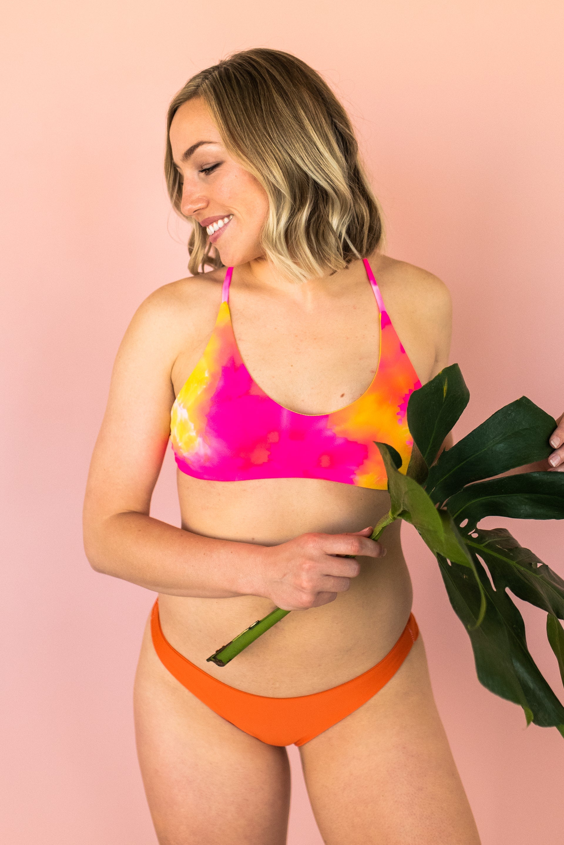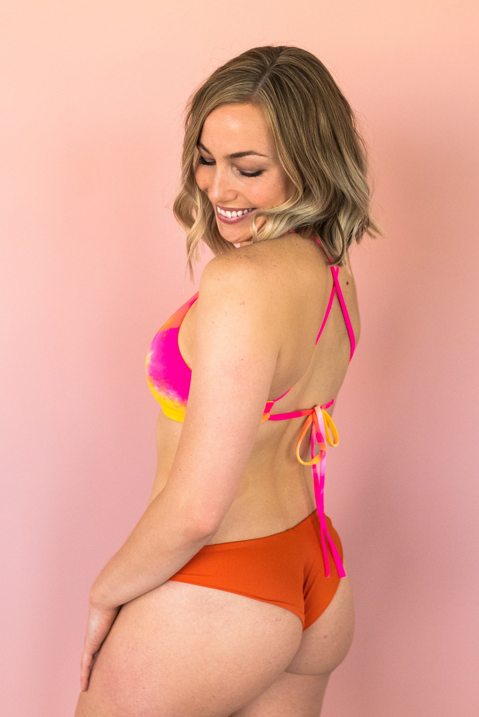 We reimagined seams with the Ryan Bottoms—no seams on the bum, just an adorable center seam down the back. The cheeky coverage sits inside the cheeks and is super comfy without the seams on the bum. These also have a lower rise but come up at a nice angle with thin sides.