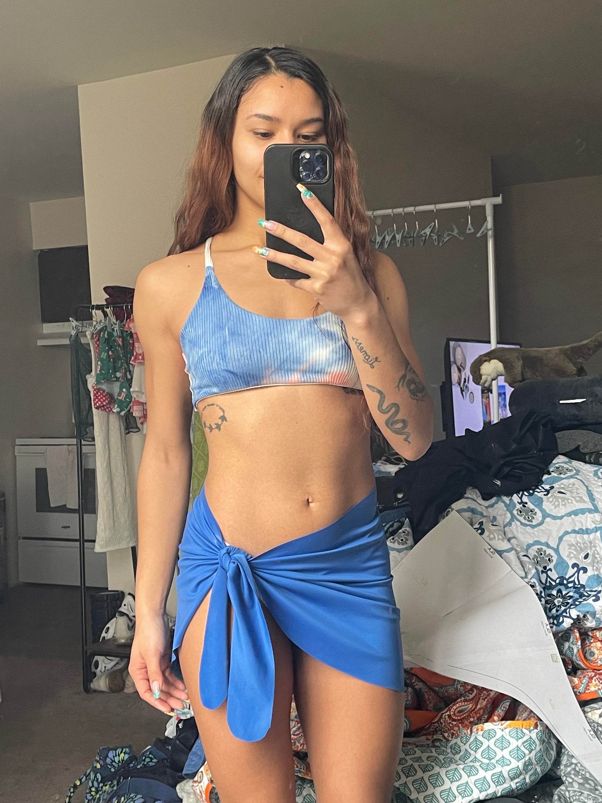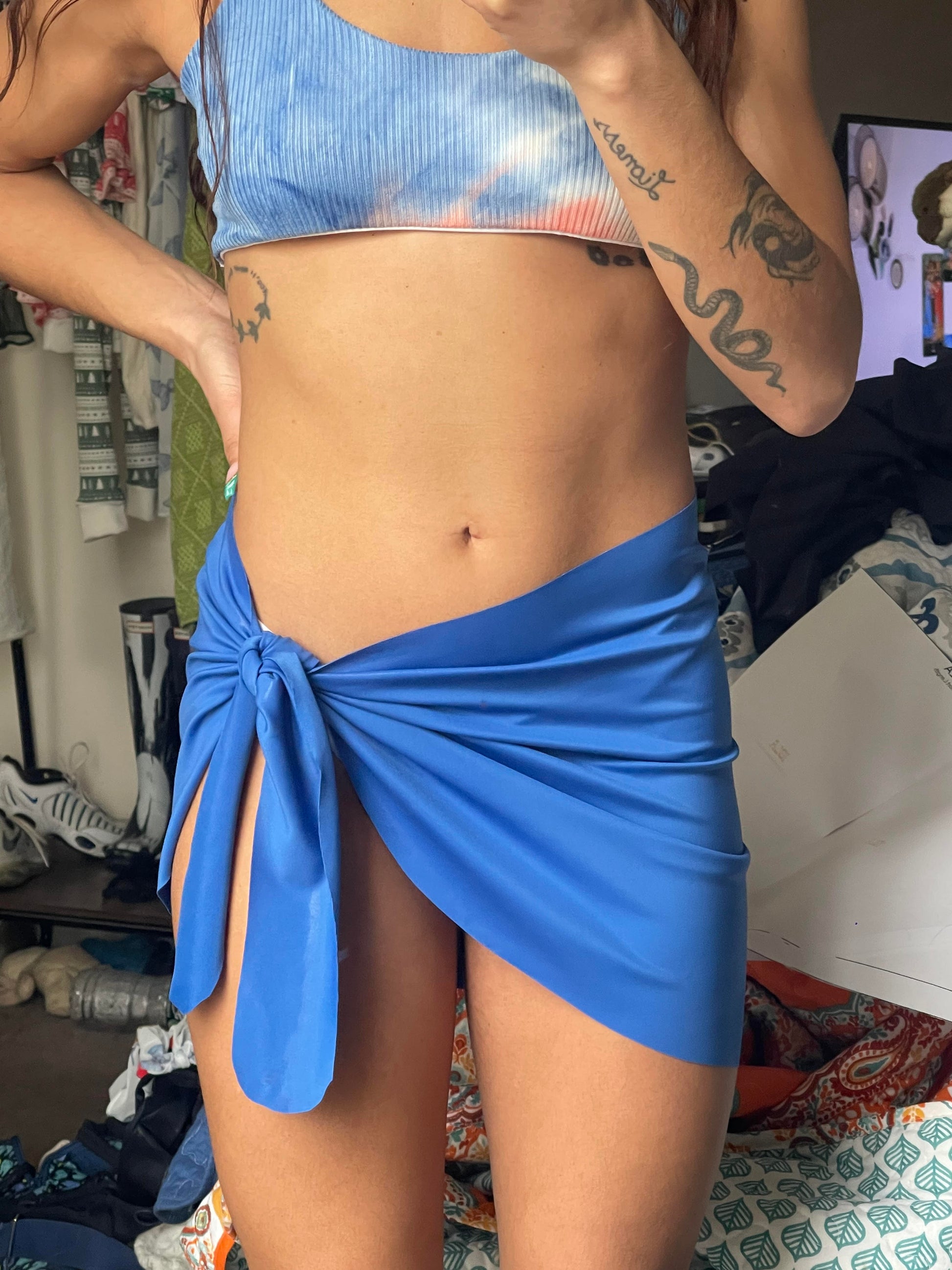 This sarong pattern is a staple cover up that's a NO SEW pattern! Simply cut this pattern on the fold and you're all finished. You can make this out of regular swimwear fabric, stretch power mesh, or any other fabric- even a non stretch fabric.